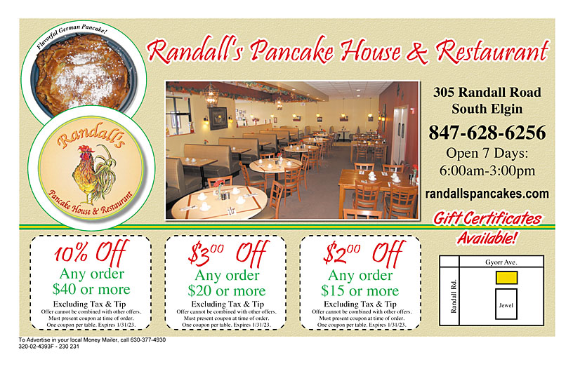 Randall S Pancake House Rest Coupon Promo South Elgin Il Money Mailer